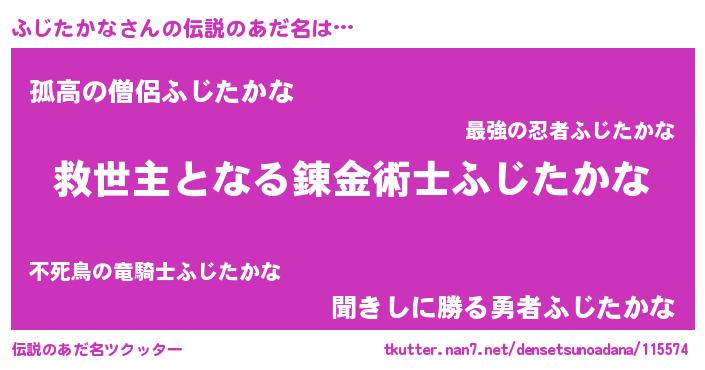 | ヒーロー風カッコイイあだ名 | 『天空の使者ふじたかな』『黄金騎士フジ』 |