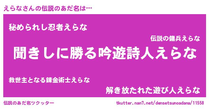 | 意味不明あだ名 | 『住所不定無職えらな(13歳)』 |