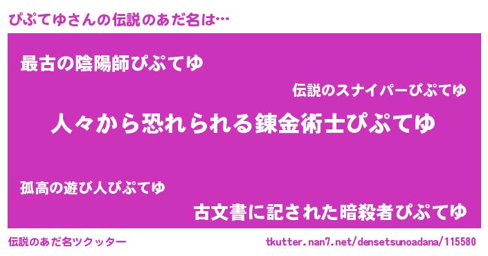 | ヒーロー風カッコイイあだ名 | 『正義の使者ぴぷてゆ』『ネオピプテユ』 |