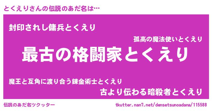 | 意味不明あだ名 | 『とくえりフォーエバー』 |