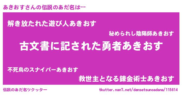| 意味不明あだ名 | 『住所不定無職あきおす(84歳)』 |