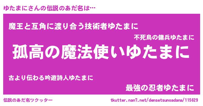 | 胡散臭い通販商品みたいなあだ名 | 『信頼と実績のサプリメント…その名も「ゆたまに」』 |