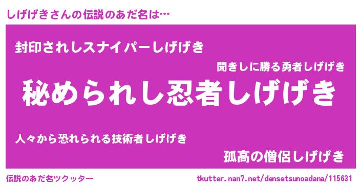 | ヒーロー風カッコイイあだ名 | 『ウルトラしげげきマン』『暗黒騎士シゲ』 |