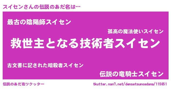 | ヒーロー風カッコイイあだ名 | 『天空の使者スイセン』『魔戒騎士スイ』 |