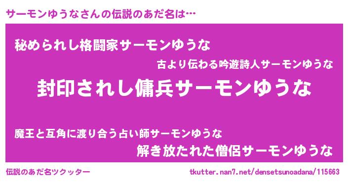 | 胡散臭い通販商品みたいなあだ名 | 『億万長者になれる水晶球…その名も「サーモンゆうな」』 |