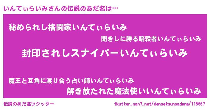 | 胡散臭い通販商品みたいなあだ名 | 『億万長者になれる霊験あらたかなお札…その名も「いんてぃらいみ」』 |