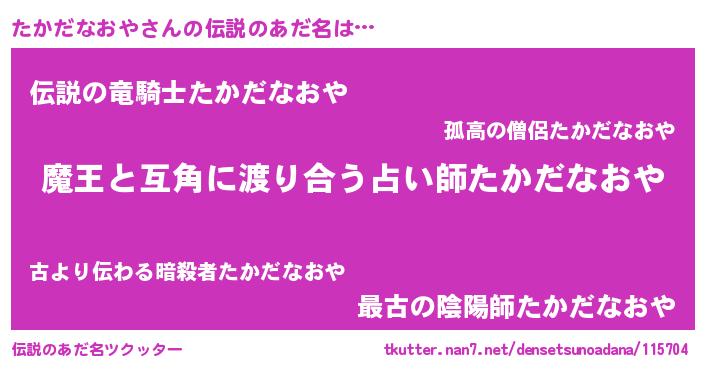 | 料理風あだ名 | 『たかだなおやごはん』 |