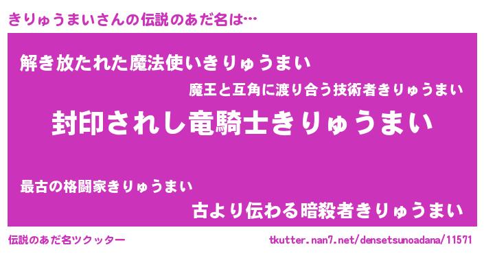 | ヒーロー風カッコイイあだ名 | 『スーパーキリュウマイ』『幻影騎士キリ』 |