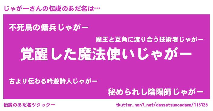 男性向けラノベタイトル風あだ名 この素晴らしい世界にじゃがーを!