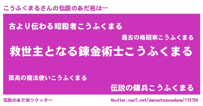 | 意味不明あだ名 | 『自称こうふくまる』 |