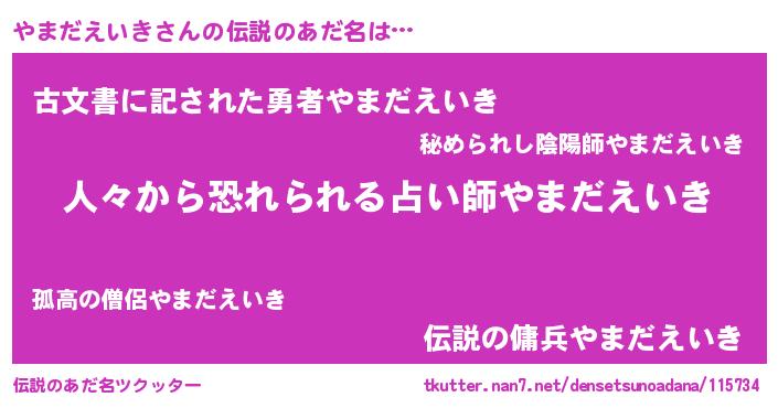 | ヒーロー風カッコイイあだ名 | 『超時空戦士ヤマダエイキ』 |