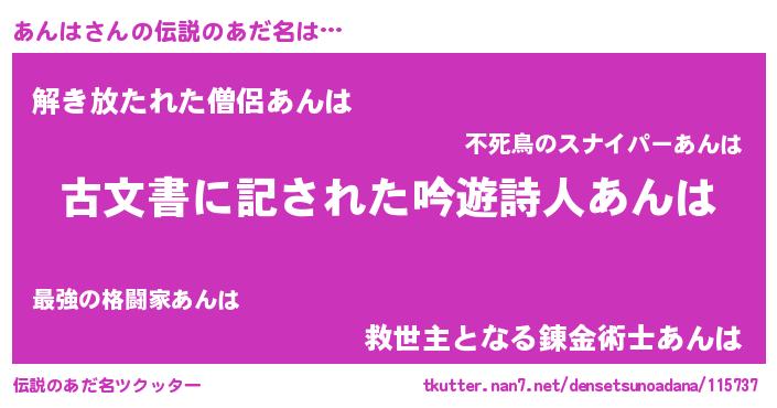 | 意味不明あだ名 | 『永久保存あんは』『つくし科あんは属』 |