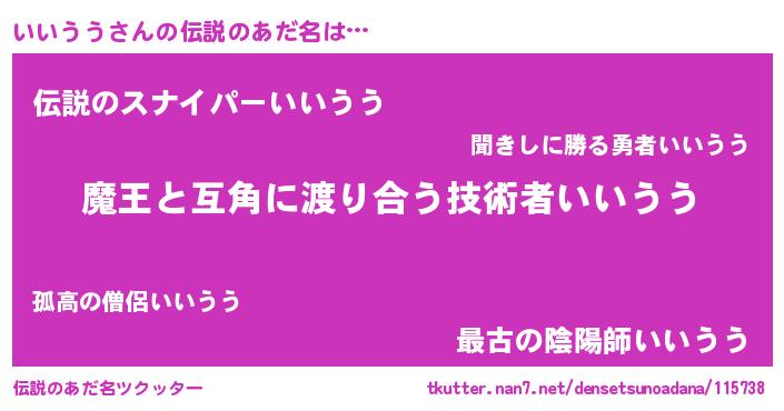 | ヒーロー風カッコイイあだ名 | 『最強戦士イイウウ』『仮面イイダー』 |