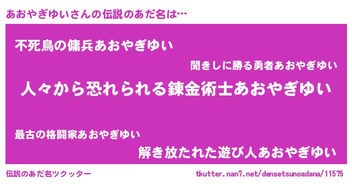 | ヒーロー風カッコイイあだ名 | 『友情の使者あおやぎゆい』 |