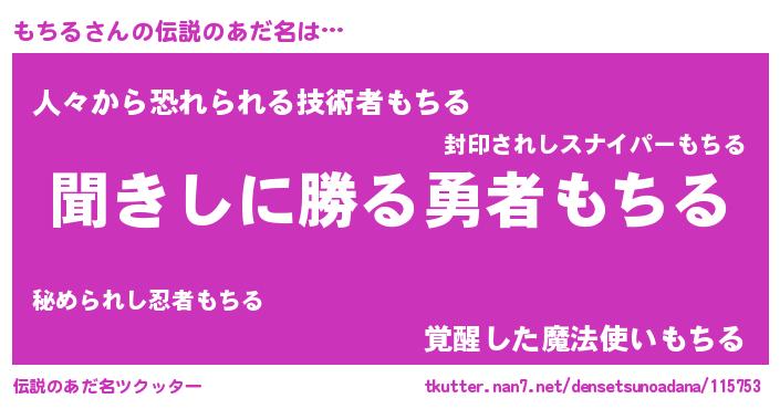 | ヘコむあだ名 | 『もちる(苦笑)』『もちを』 |