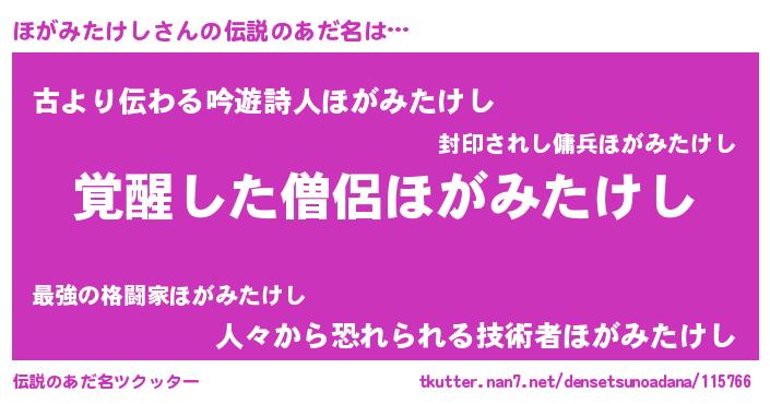 | 意味不明あだ名 | 『自称ほがみたけし』 |
