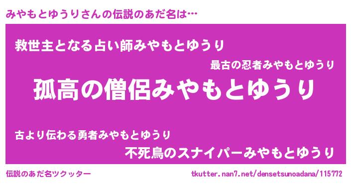| ポケモン風あだ名 | 『ヒミヤモトユウリ』『メロミッヤ』 |