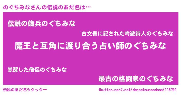 | ヒーロー風カッコイイあだ名 | 『慈愛の使者のぐちみな』 |