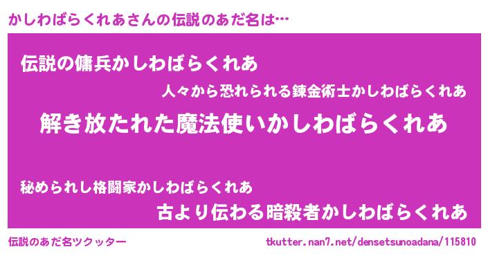 | ヒーロー風カッコイイあだ名 | 『銀牙騎士カシ』『仮面カシダー』 |