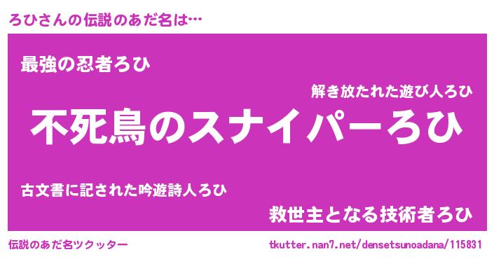 | 男性向けラノベタイトル風あだ名 | 『魔法科高校のろひ』『魔弾の王とろひ』 |
