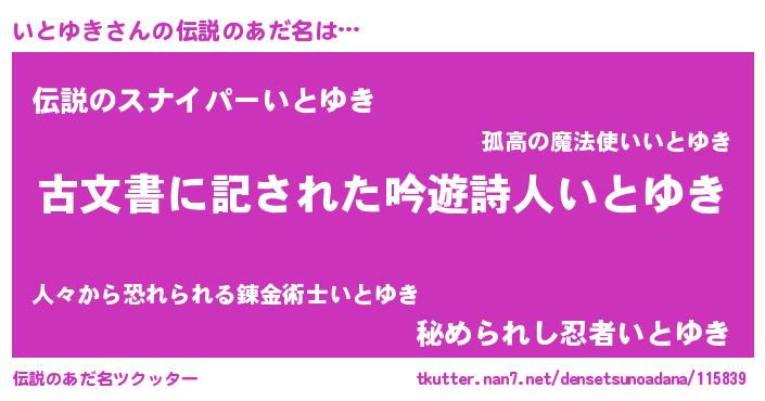 | ヒーロー風カッコイイあだ名 | 『ネオイトユキ』『ウルトラ戦士イトユキ』 |