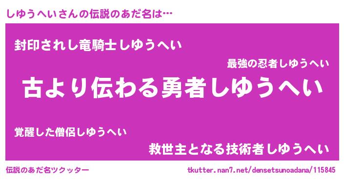 | ヒーロー風カッコイイあだ名 | 『サイバー戦士シユウヘイ』 |