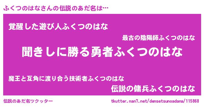 | ヒーロー風カッコイイあだ名 | 『ネオフクツノハナ』『暗黒騎士フク』 |