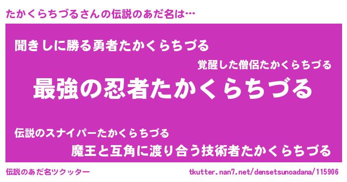 | ファンタジー風あだ名 | 『エターナルタカクラチヅルー』 |