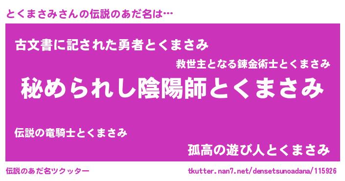 | ファンタジー風あだ名 | 『エターナルトクマサミー』 |