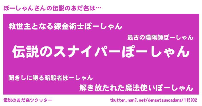 | ヒーロー風カッコイイあだ名 | 『超時空戦士ポーシャン』『仮面ポーダー』 |