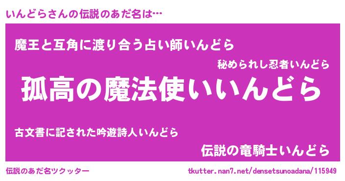 | 意味不明あだ名 | 『とにかく怪しいいんどら』 |