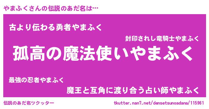 | 意味不明あだ名 | 『とにかく怪しいやまふく』 |