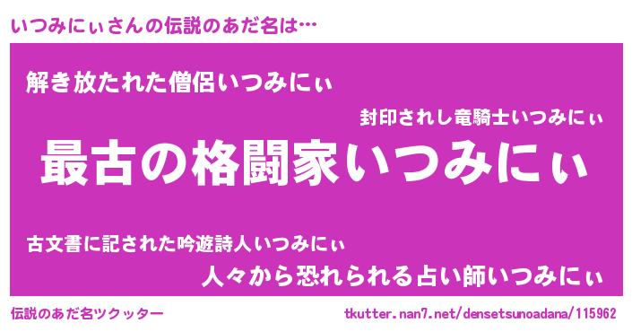 | ヒーロー風カッコイイあだ名 | 『ウルトラいつみにぃマン』 |