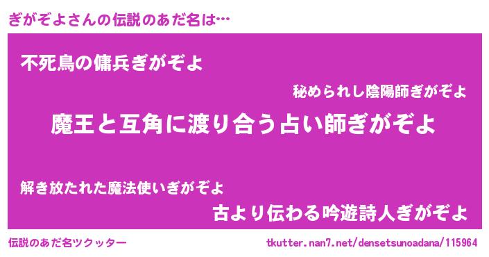 | ヒーロー風カッコイイあだ名 | 『仮面ギガダー』『慈愛の使者ぎがぞよ』 |