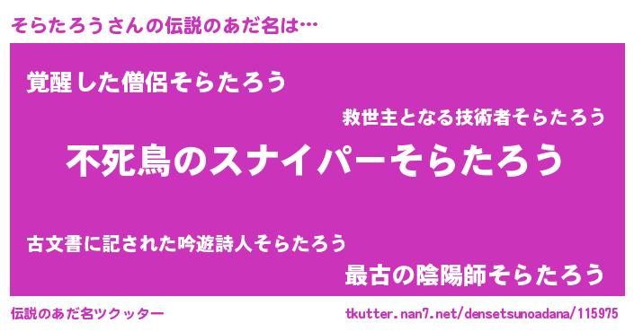 | 胡散臭い通販商品みたいなあだ名 | 『モテモテ間違いなし霊験あらたかなお札…その名も「そらたろう」』 |