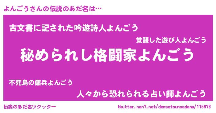 | ファンタジー風あだ名 | 『エターナルヨンゴウー』『ゼヨントゥ』 |