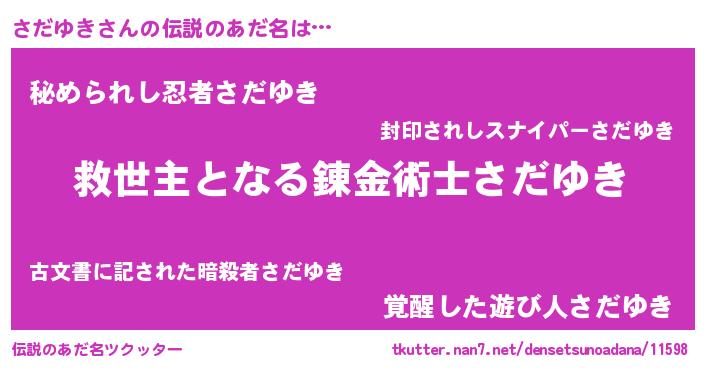 | 男性向けラノベタイトル風あだ名 | 『ノーゲーム・ノーサダユキ』 |