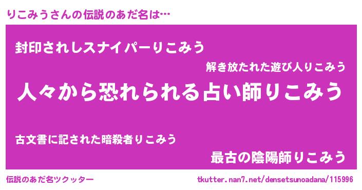 | ヒーロー風カッコイイあだ名 | 『正義の使者りこみう』『仮面リコダー』 |