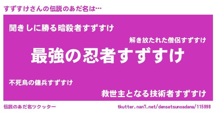 | ファンタジー風あだ名 | 『エターナルスズスケー』『ゼスズトゥ』 |