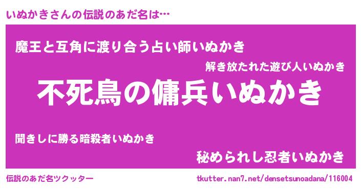 | ヘコむあだ名 | 『いぬにゅー』『なまこ酢』『いぬお』 |