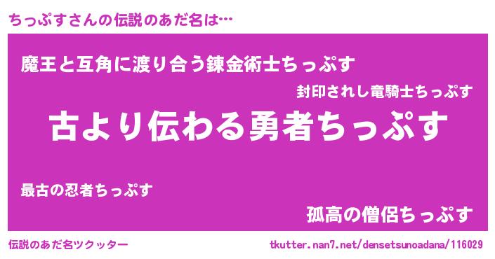 | 女子向けラノベタイトル風あだ名 | 『ちっぷすの契約王妃』『ちっぷす恋絵巻』 |