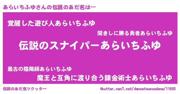 | ヒーロー風カッコイイあだ名 | 『スーパーアライチフユ』『幻影騎士アラ』 |