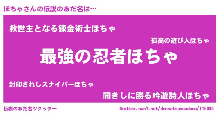 | ファンタジー風あだ名 | 『エターナルホチャー』『ゼホチトゥ』 |