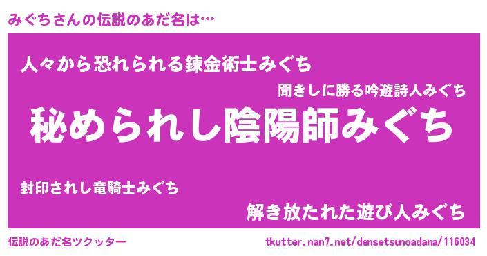 | ファンタジー風あだ名 | 『エターナルミグチー』『ヴァルミグーナ』 |