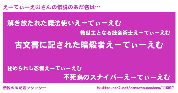| ポケモン風あだ名 | 『エーセウス』『エーーイ』 |