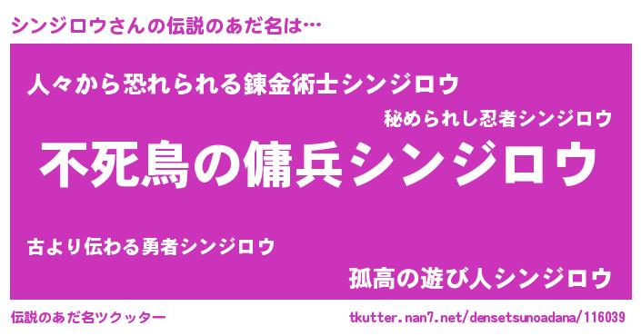 | 男性向けラノベタイトル風あだ名 | 『転生したらシンジロウだった件』 |