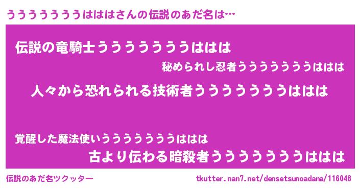 | 胡散臭い通販商品みたいなあだ名 | 『100人中100人が認めたマグネット磁石…その名も「うううううううははは」』 |
