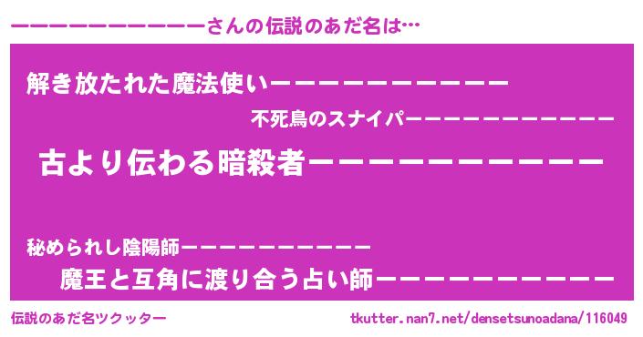 | 女子向けラノベタイトル風あだ名 | 『闇のーーーーーーーーーー』 |
