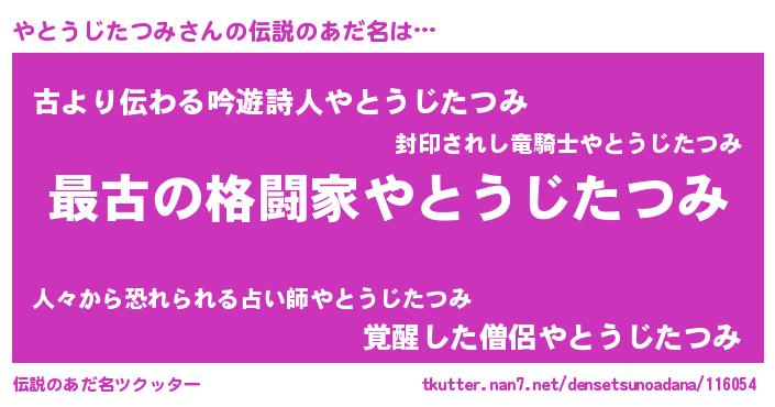 | 意味不明あだ名 | 『やとうじたつみフォーエバー』 |