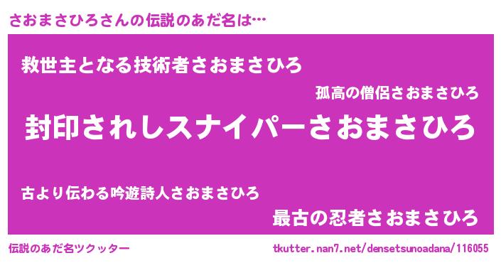 胡散臭い通販商品みたいなあだ名 | 『億万長者になれる霊験あらたかなお札…その名も「さおまさひろ」』 |